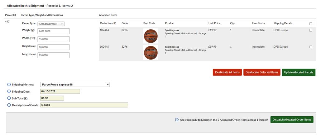 You can also update Parcel Weights and Delete Parcels in this section as described in the HOW TO - UPDATE/DELETE PARCEL DETAILS article.
