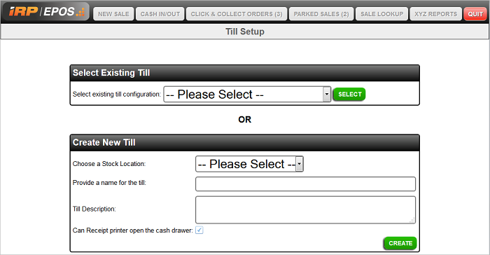 This section allows you to add Electronic Point of Sale (EPOS) systems to certain stock locations within the business. You can have any number of tills that you need in each location. Any IRP Admin user is enabled for the EPOS system when they are assigned a shop code under their Admin User Account. For more information on setting this up, see the Admin Users section.