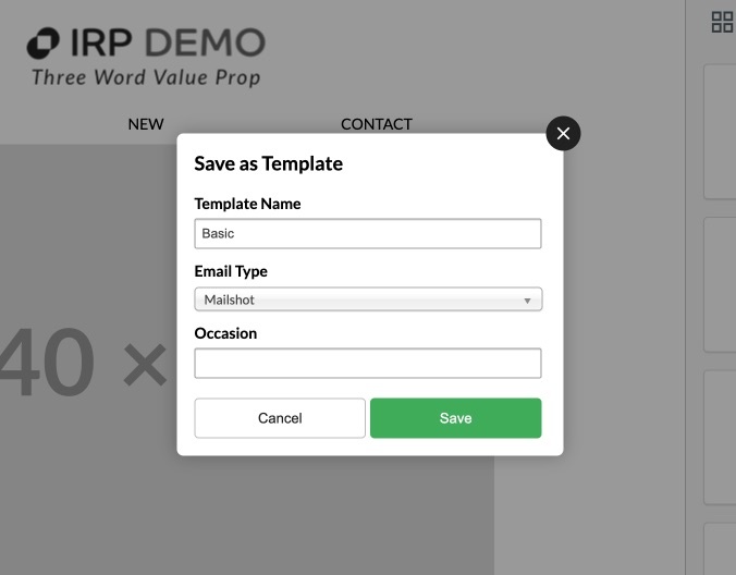 The ‘Save Template’ action allows the user to give the template a name, email type and occasion (if applicable). The Occasion field in text entry and allows the user to later filter the templates using their chosen occasion group name. The new template is now available to the merchant in their ‘Saved Templates’ tab.