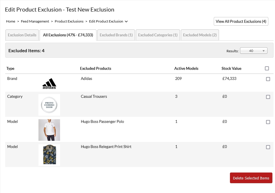 - Excluded Products: This is the name of the Brand, Category or Model being excluded.